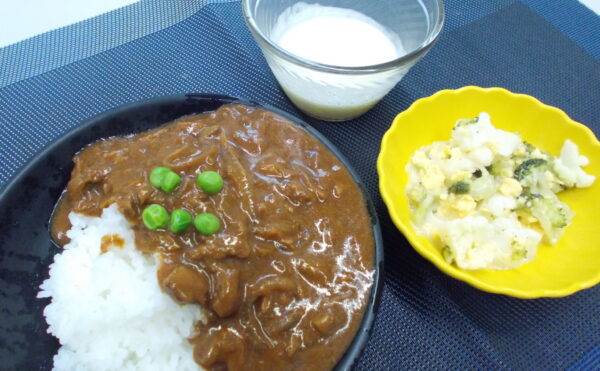 昼食 ハヤシライス ミモザサラダ フルーツヨーグルト