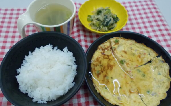 昼食 ご飯 千草焼き わかめの酢の物 みそ汁(えのき・ねぎ)