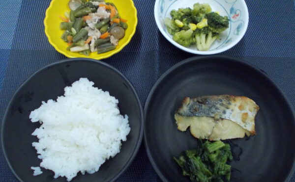 夕食 ご飯 さわらの西京焼き 三色きんぴら ブロッコリーの青じそ和え