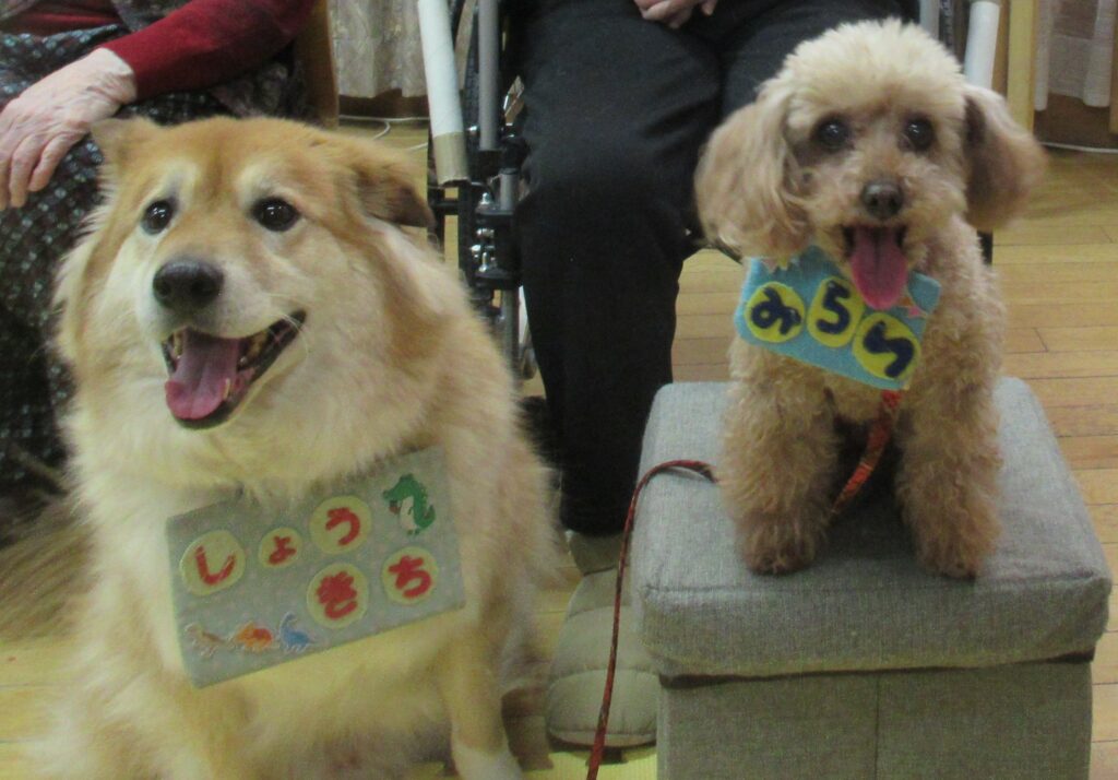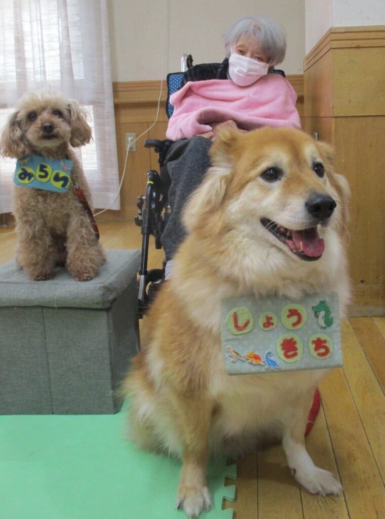 日本レスキュー協会様より、2匹の犬「しょう吉くん」「みらいくん」とサポートの方2名が来苑してくれました。