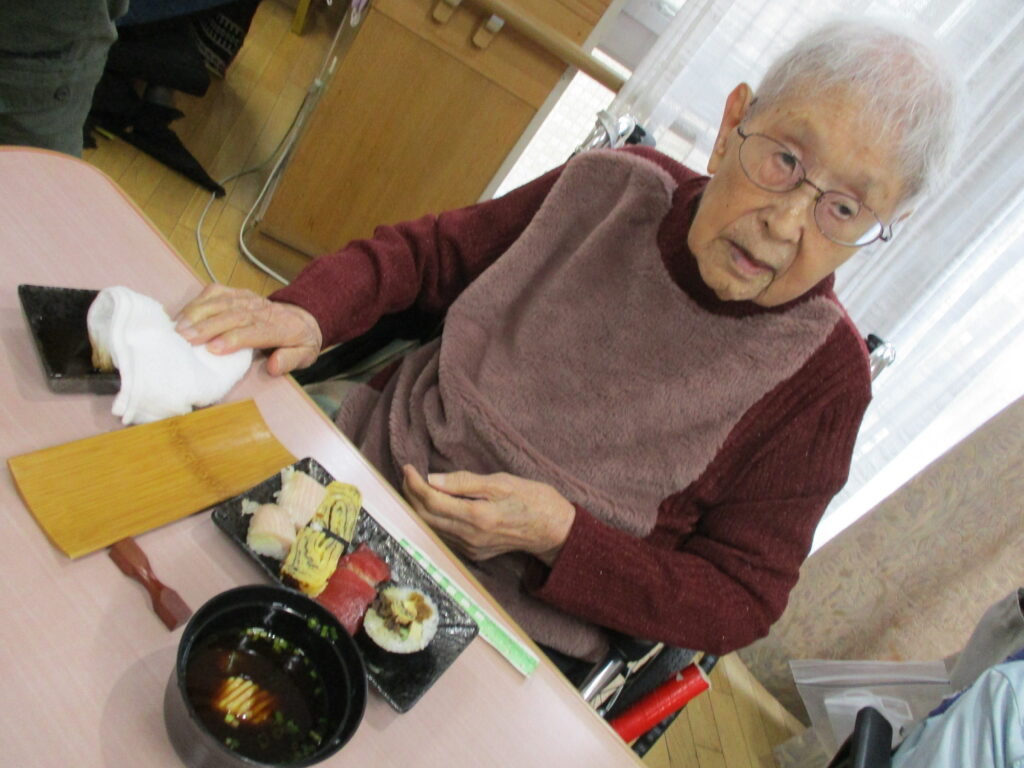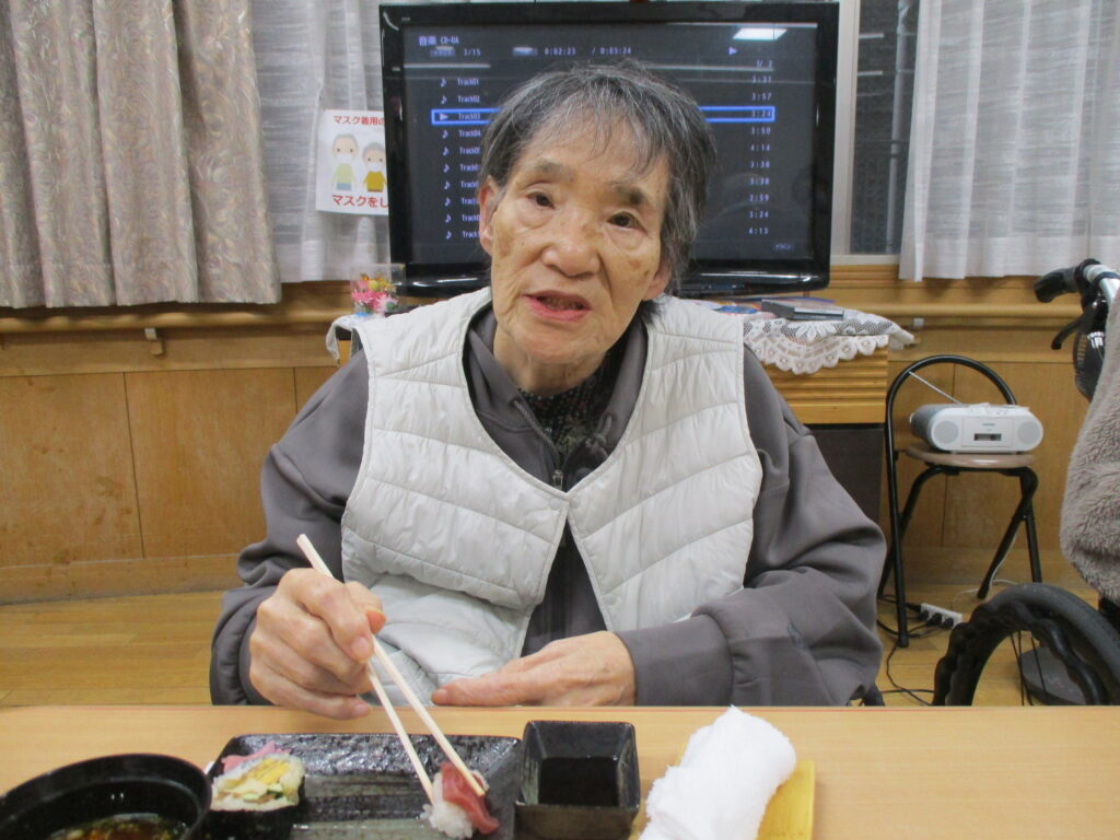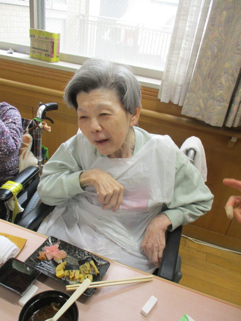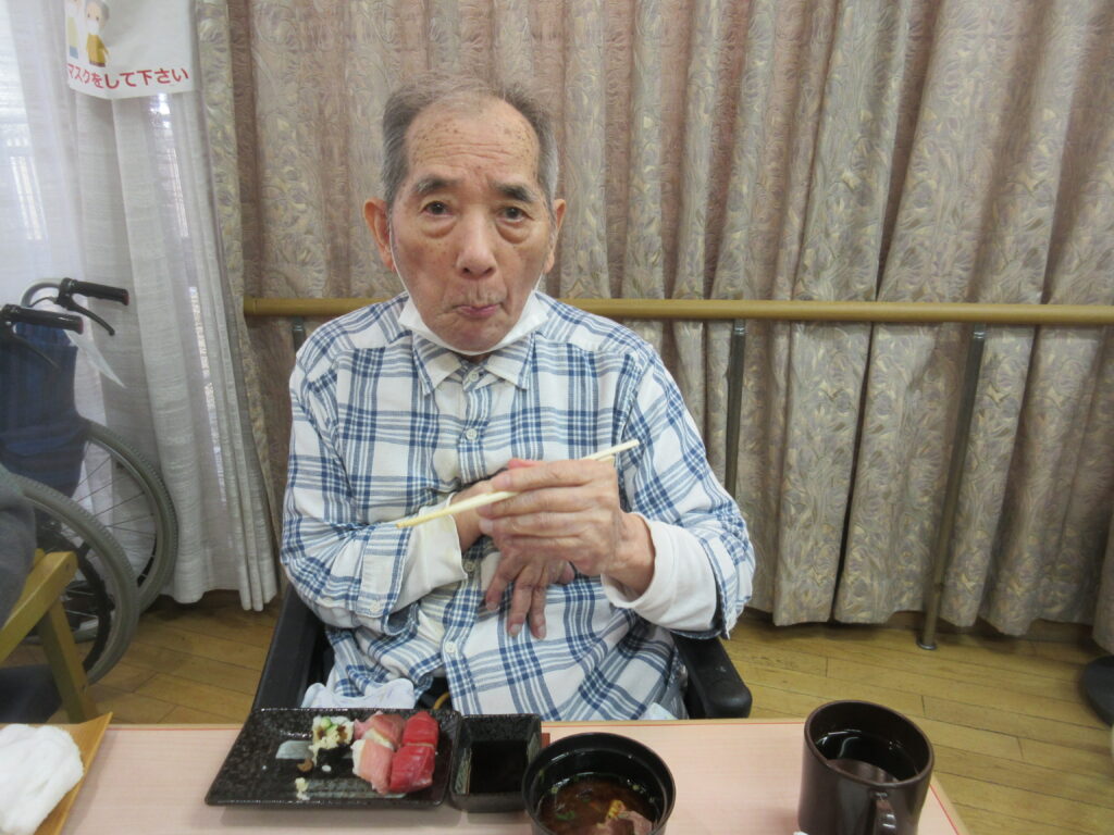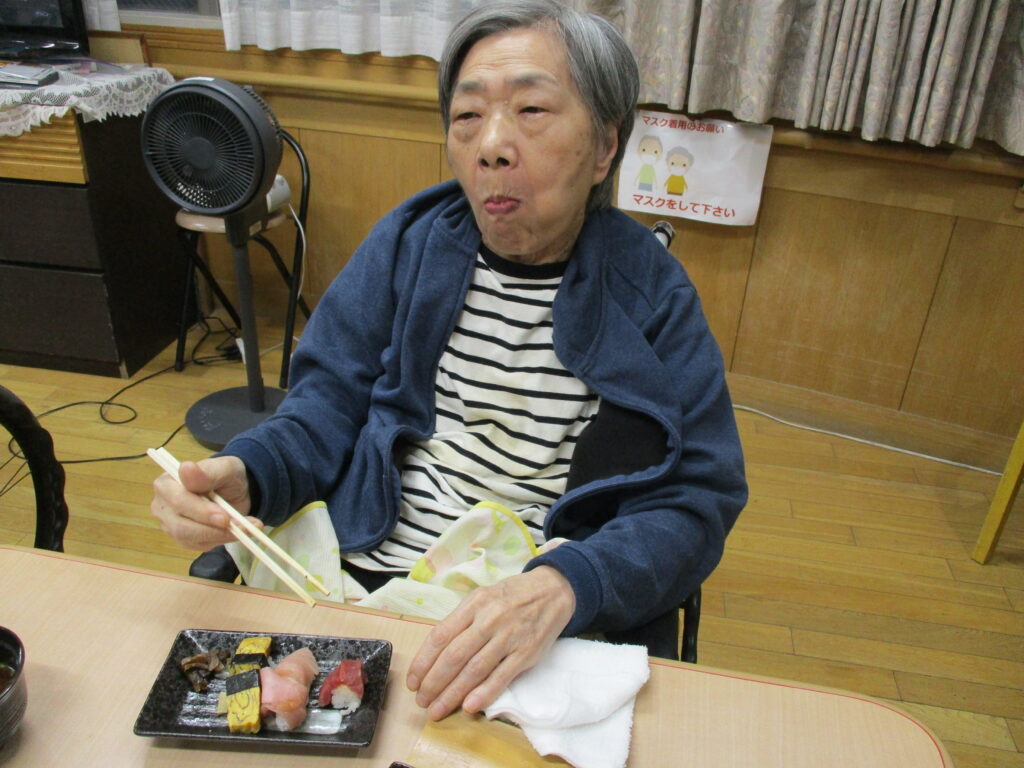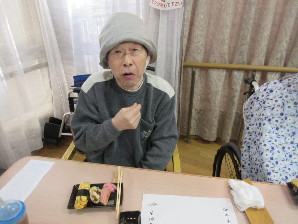 お寿司を召しあがる時には皆様笑顔が多く、いつもより進んで食べられる姿が見られました。