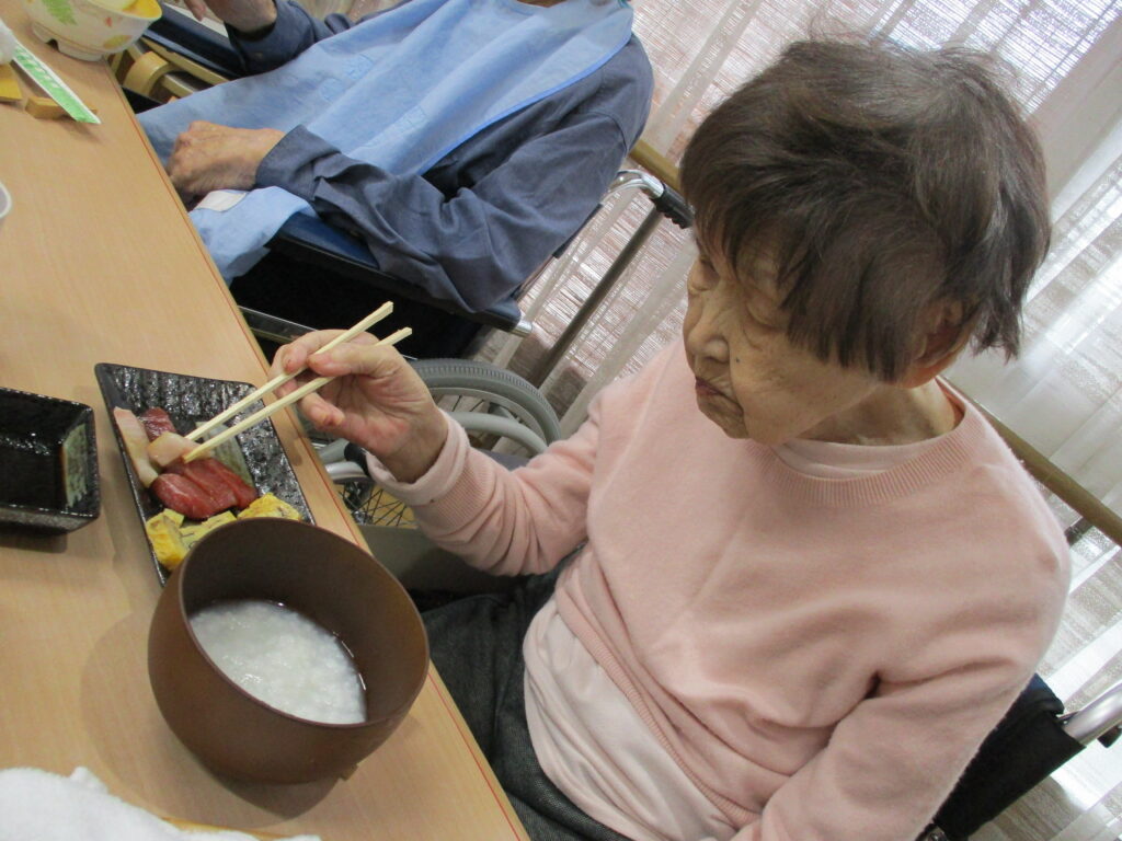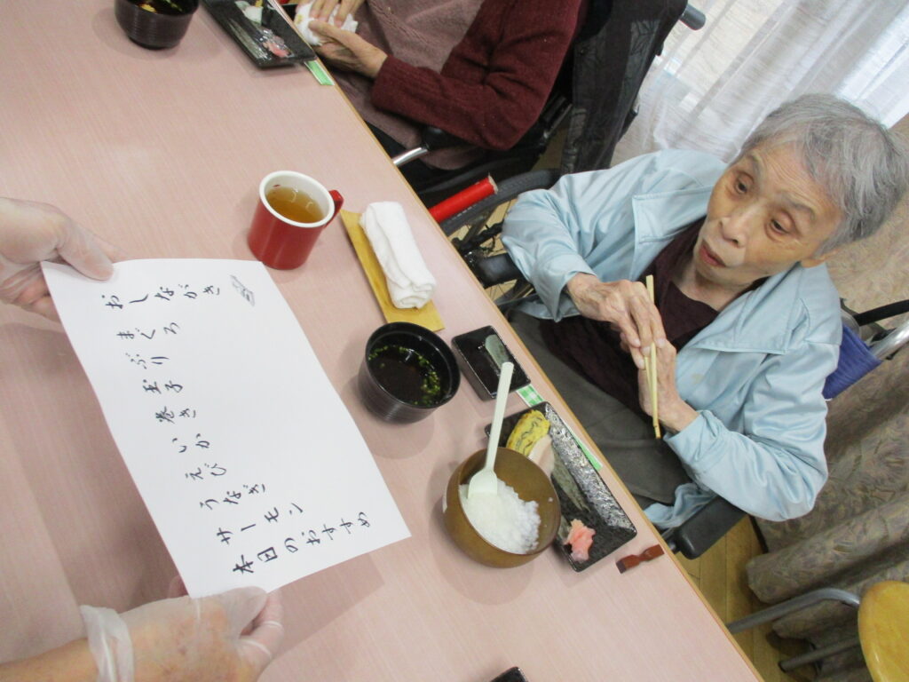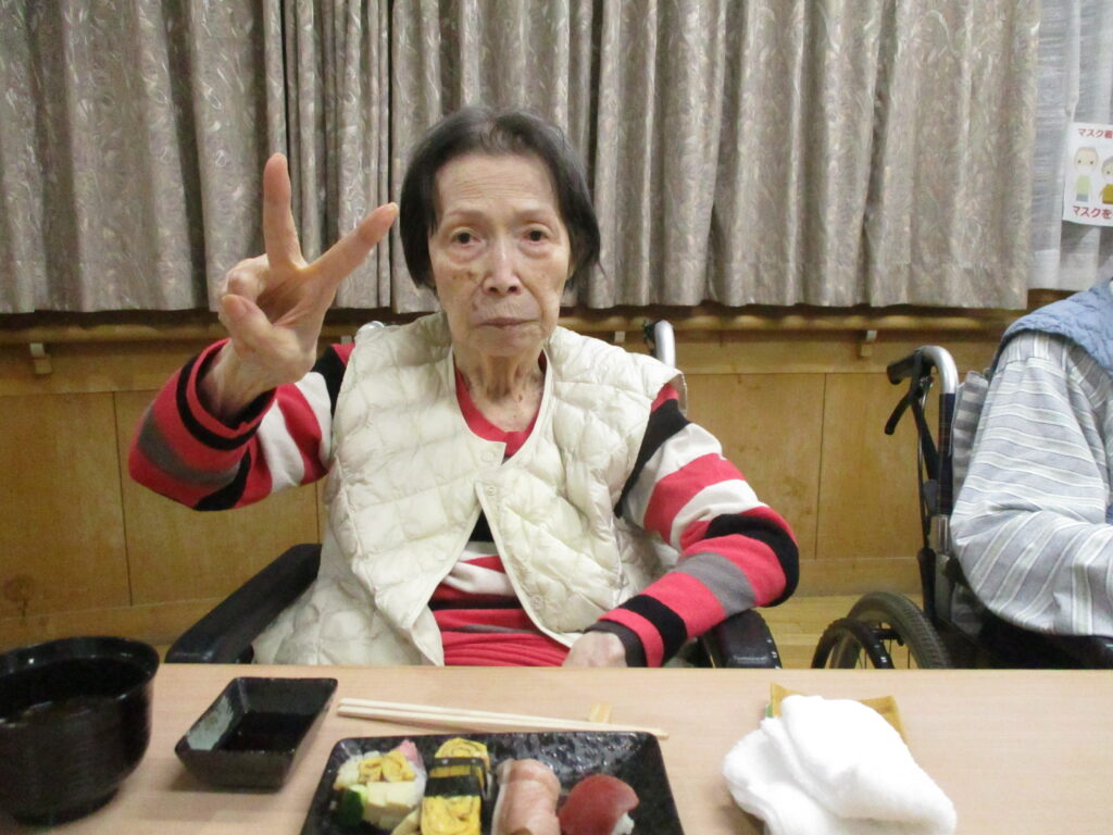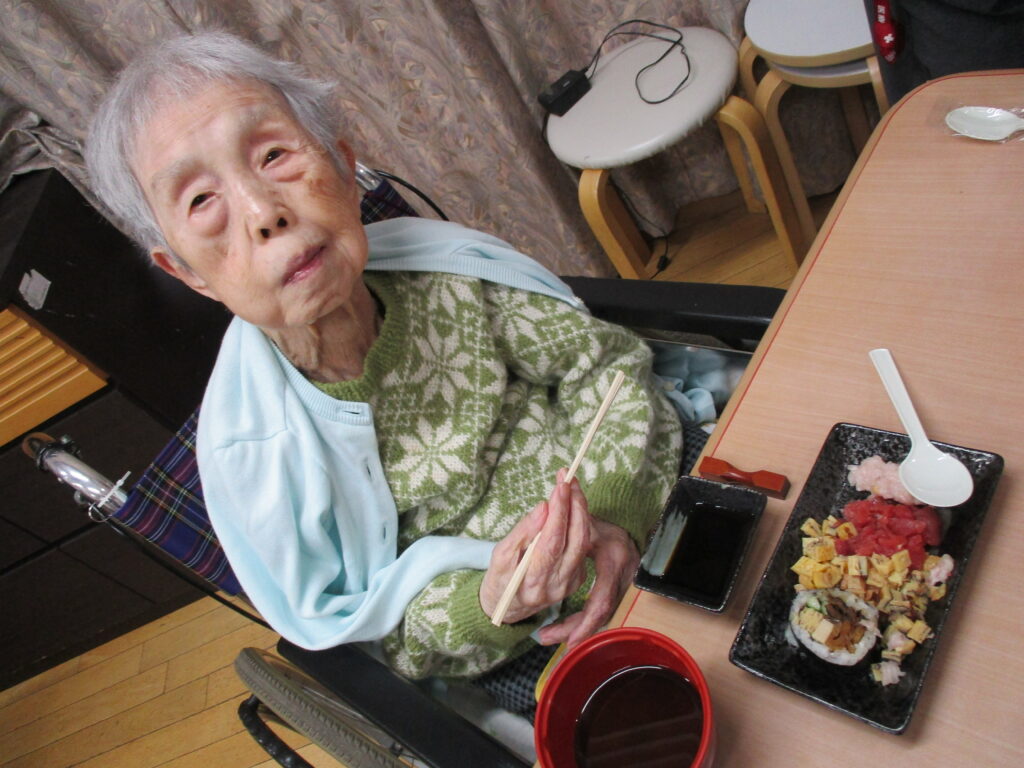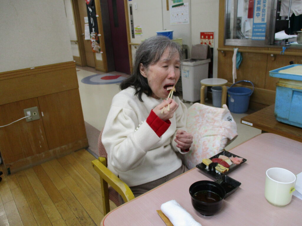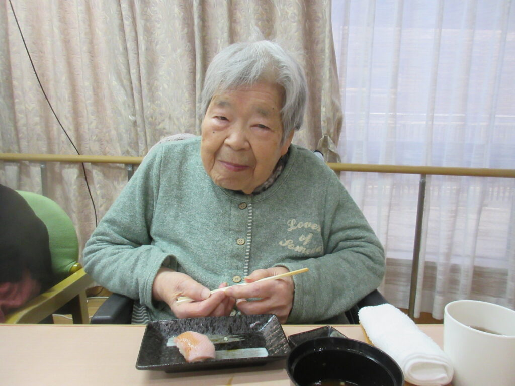 お寿司を召しあがる時には皆様笑顔が多く、いつもより進んで食べられる姿が見られました。