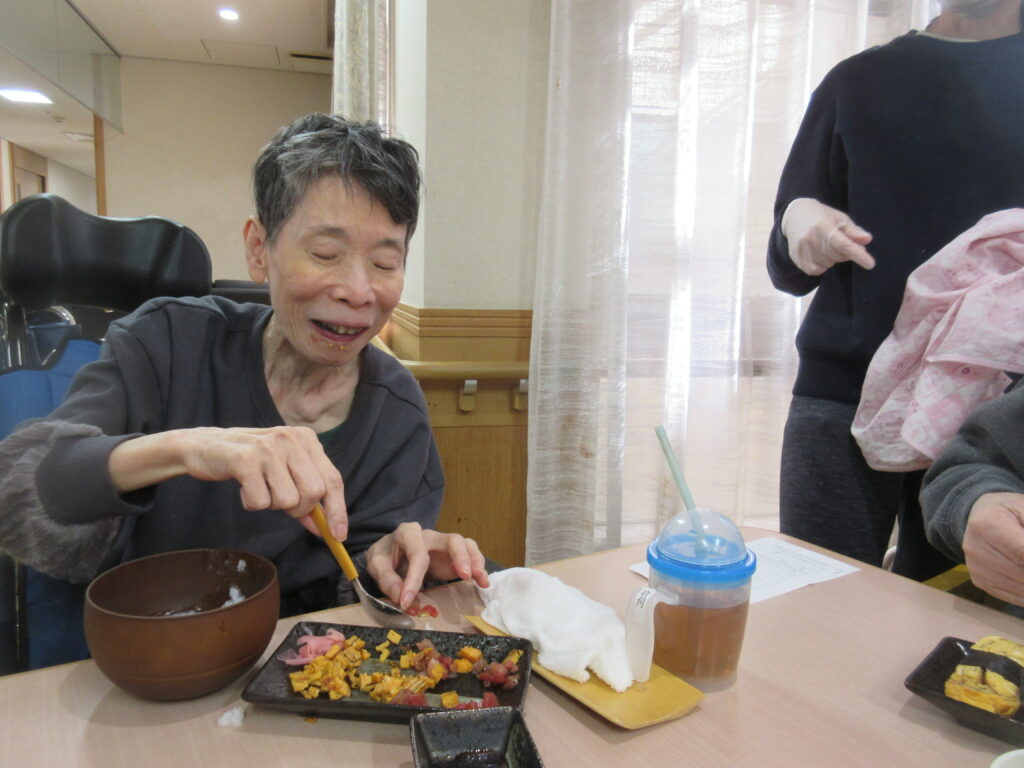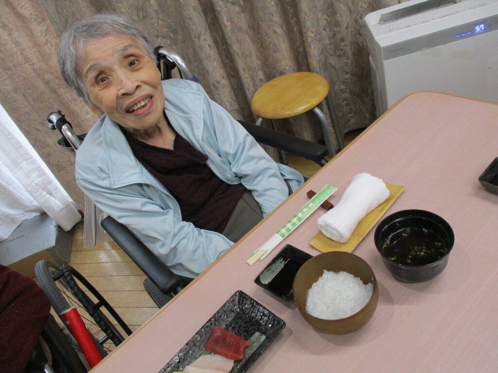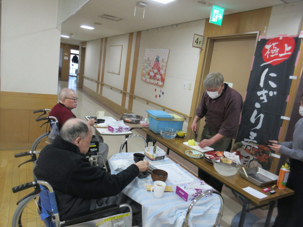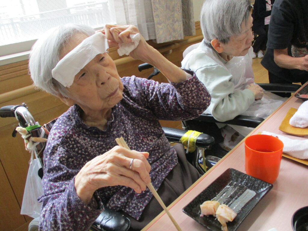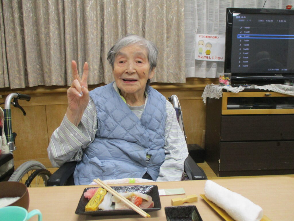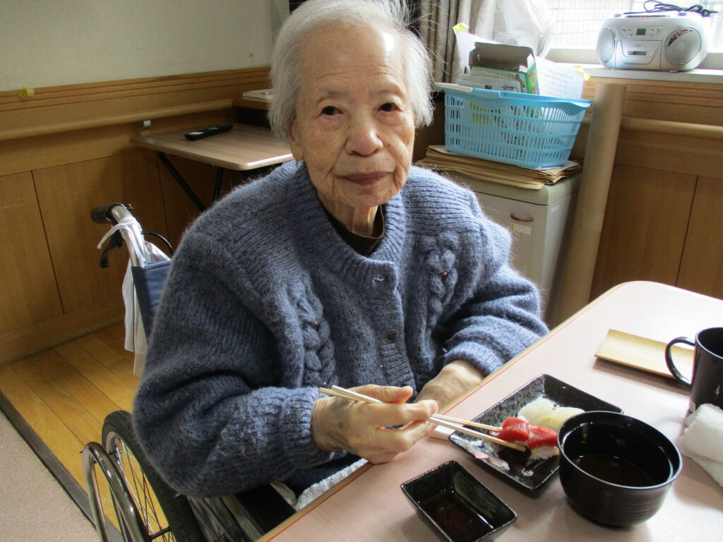 お寿司を召しあがる時には皆様笑顔が多く、いつもより進んで食べられる姿が見られました。