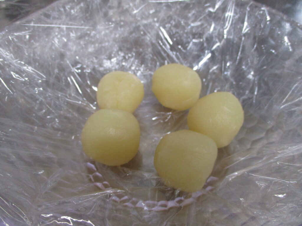 もちもちになるまで電子レンジで温める、混ぜるを繰り返します。 どんどん弾力が出てくるので力いっぱいに混ぜていただきました。