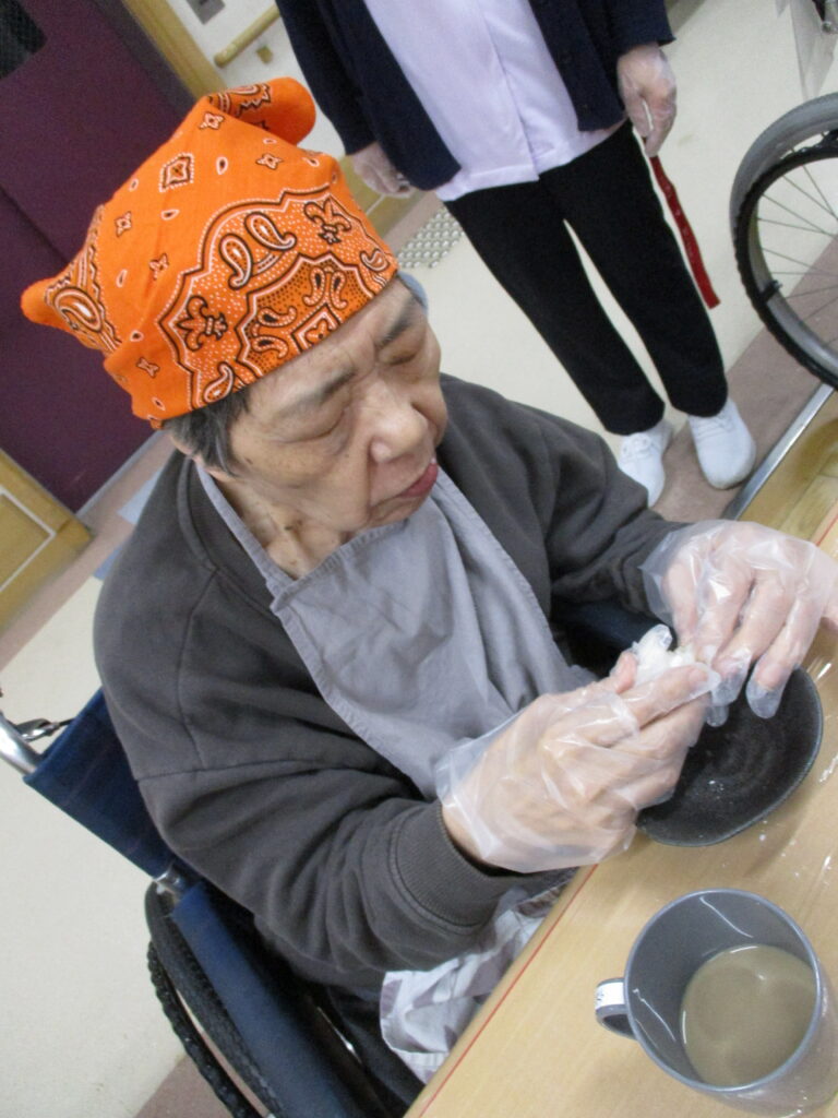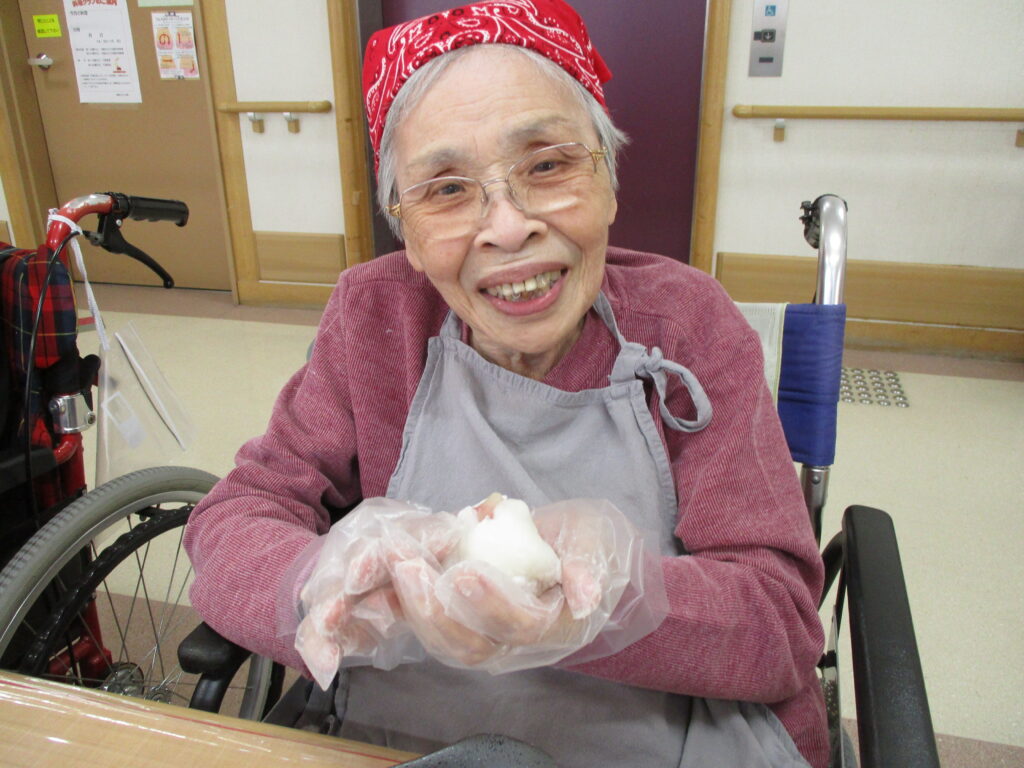 お餅が食べられない入居者の方にはあんこたっぷりの手作り水ようかんを食べていただきました。