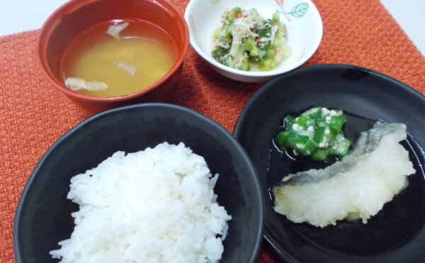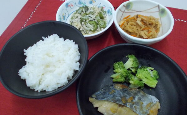 夕食 ご飯 さわらの幽庵焼き 切り干し大根の煮物 オクラのドレッシング和え