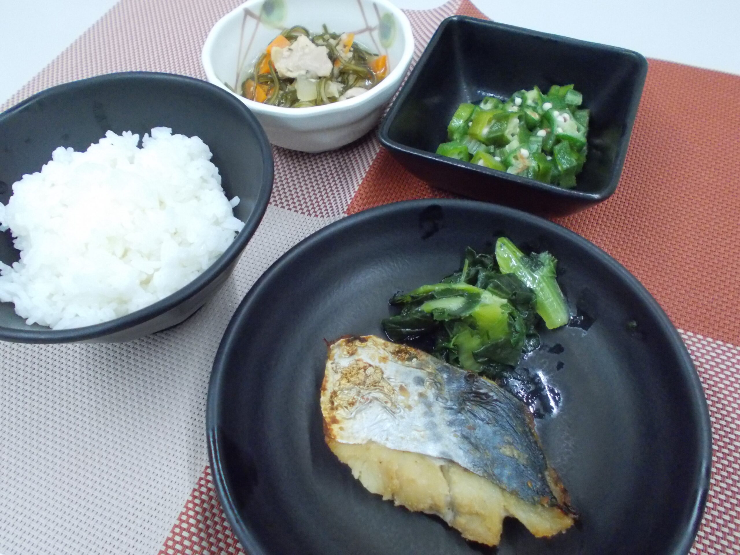 夕食 ご飯 さわらの利休焼き 鶏昆布煮 オクラのおかか和え