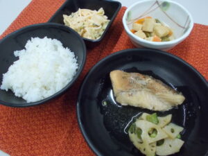 夕食 ご飯 メバルの煮付け 厚揚げの煮物 スパゲティサラダ