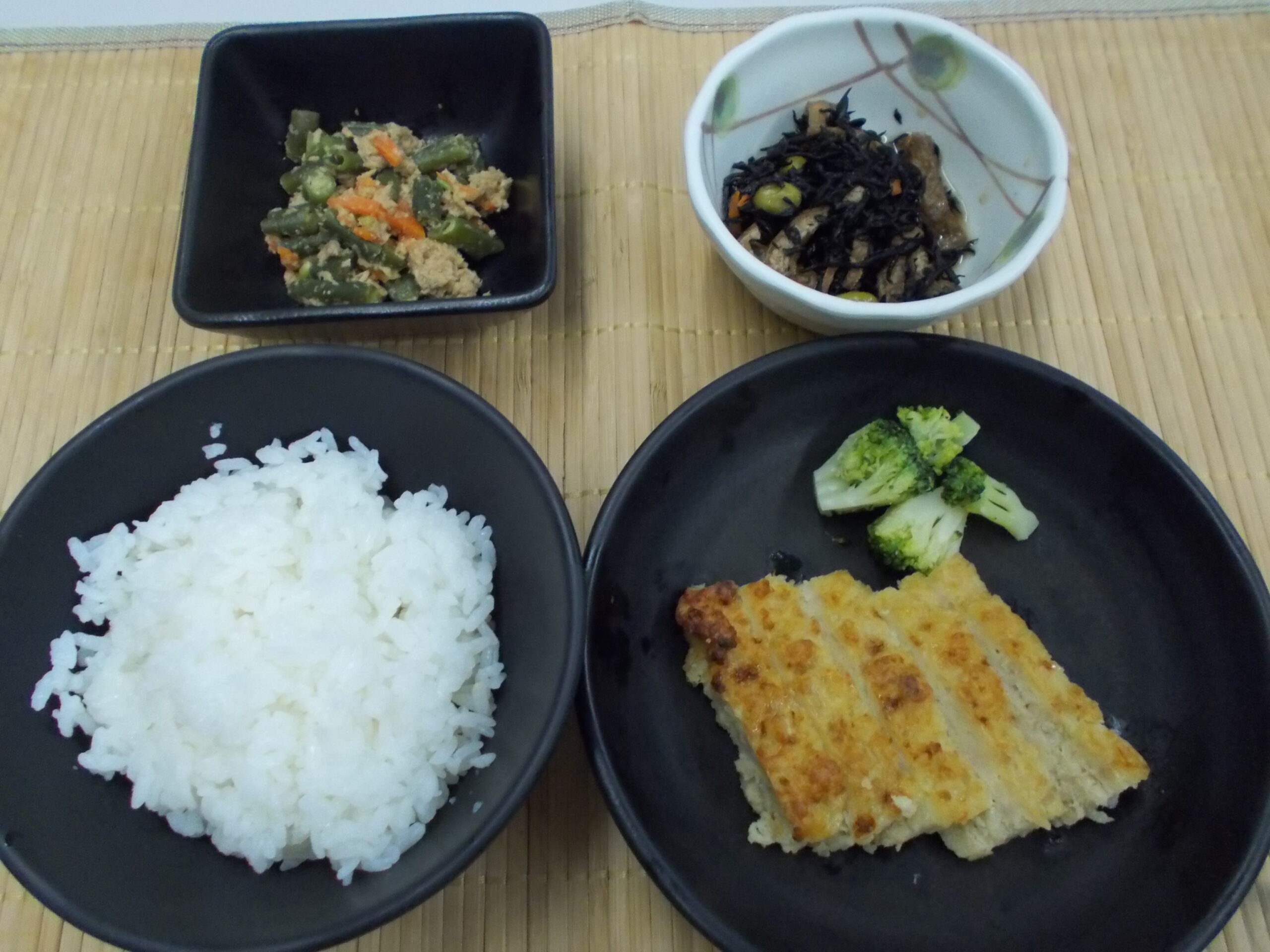 夕食 ご飯 松風焼き ひじき煮 いんげんのごま和え