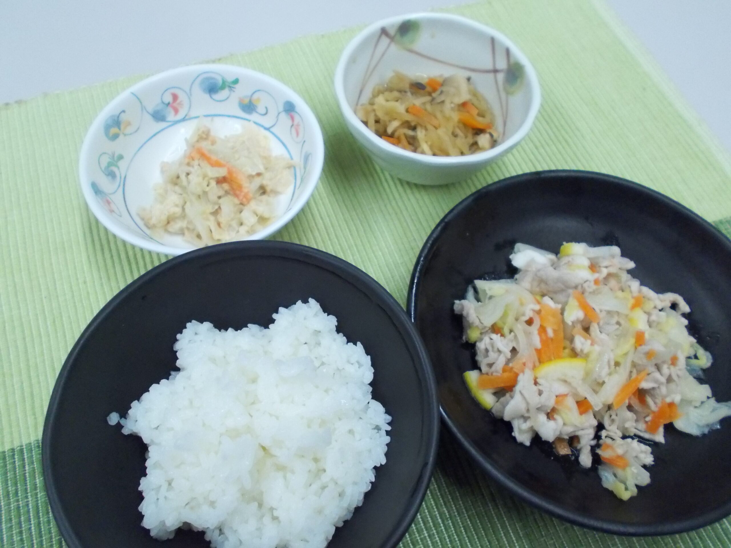 夕食 ご飯 豚肉の塩レモン蒸し 切り干し大根の煮物 ツナサラダ