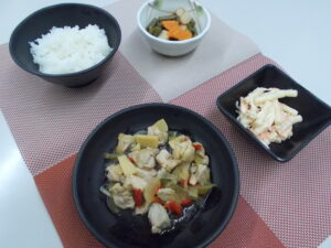2026年3月17日 / 最終更新日 : 2026年3月19日 yorokobien 夕食 夕食 鶏と野菜のオイスター炒め 夕食 ご飯 鶏と野菜のオイスターソース炒め さつま揚げといんげんの煮物 マカロニサラダ