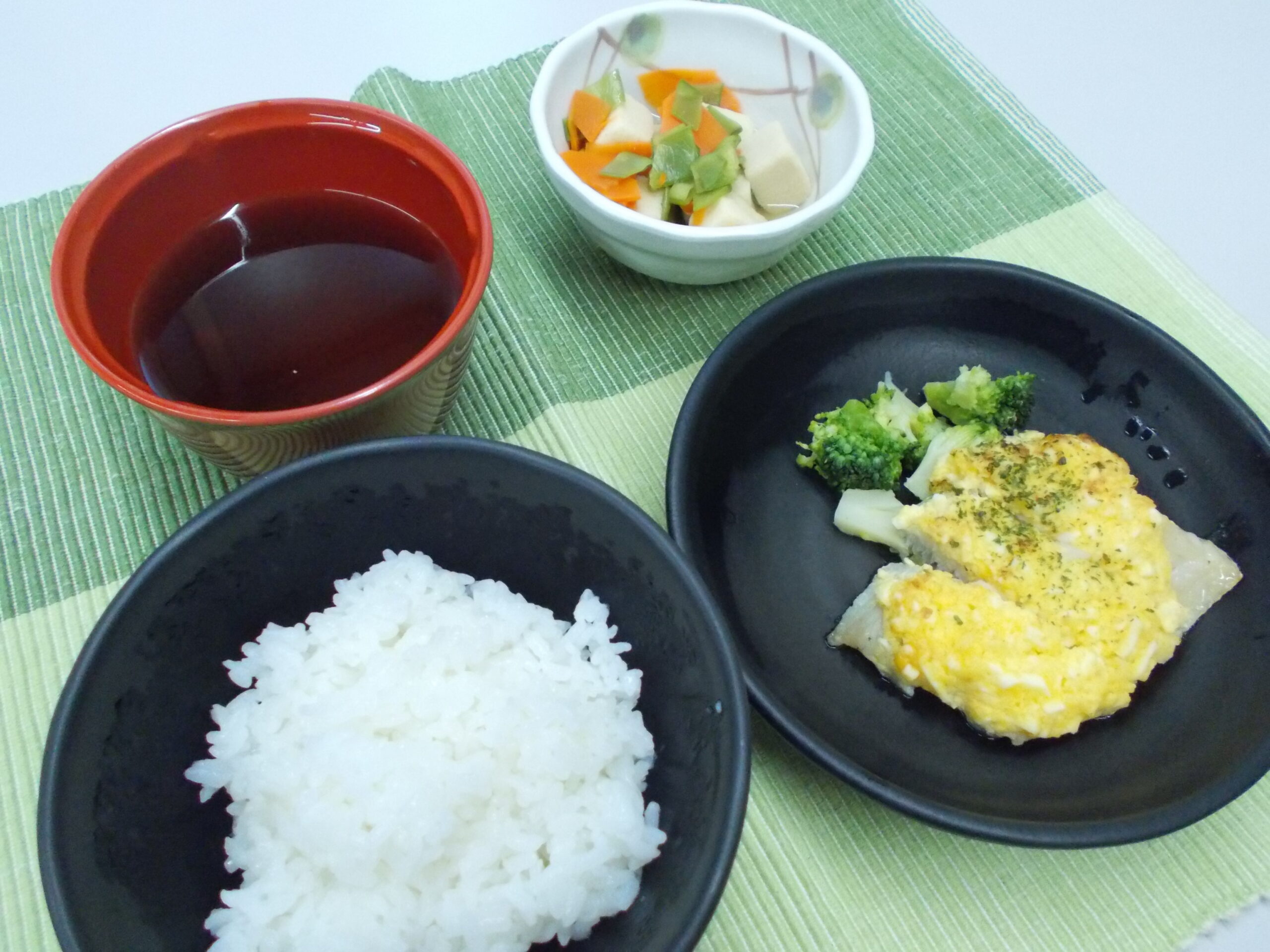 昼食 ご飯 さわらのミモザ焼き 高野豆腐の煮物 赤だし