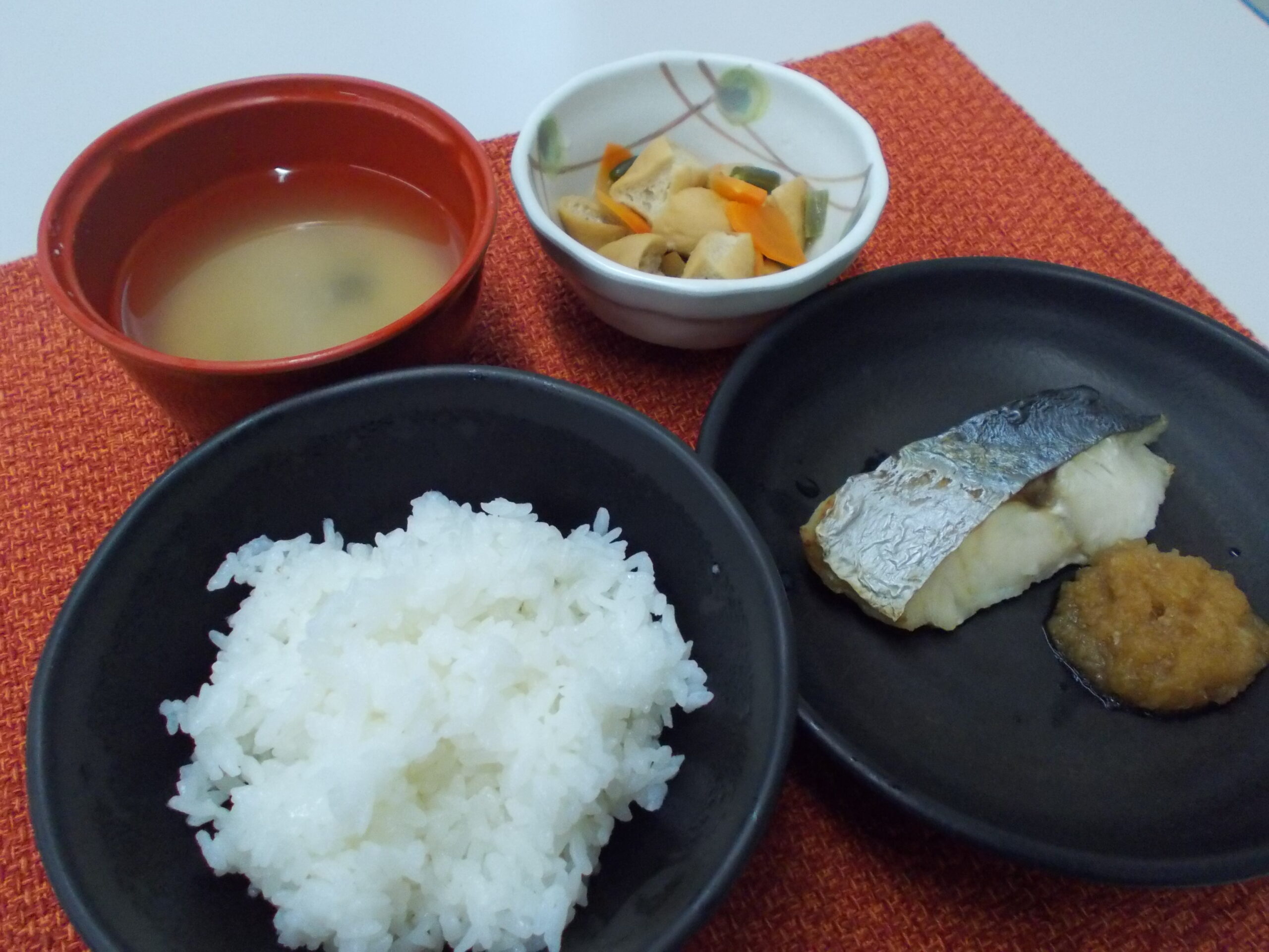 昼食 ご飯 さわらの塩焼き がんもの煮物 みそ汁(大根・葉)