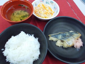 昼食 ご飯 さわらの西京焼き 春雨の和え物 清汁(えのき・ねぎ)