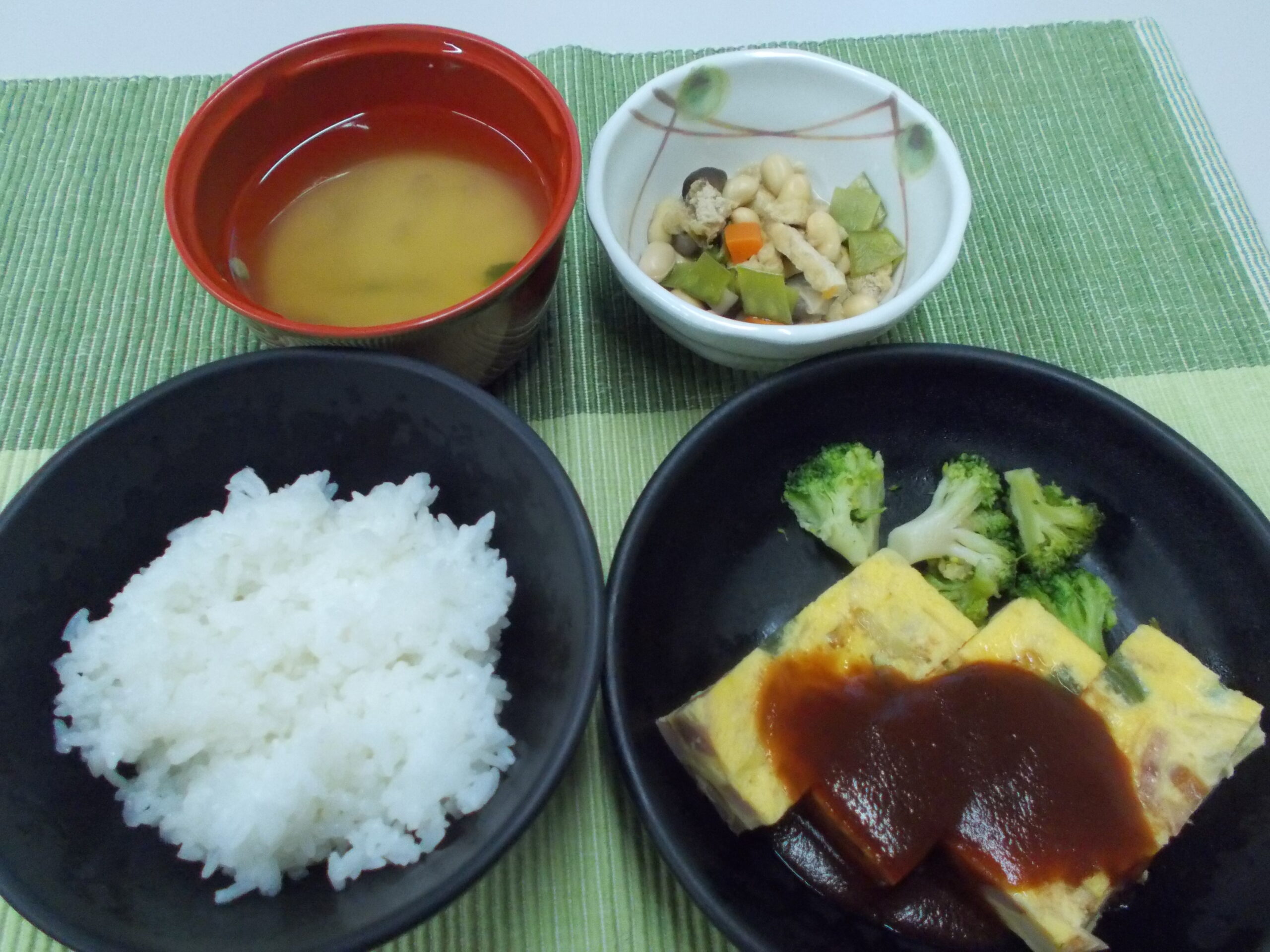 昼食 ご飯 オムレツ 大豆煮 みそ汁(玉葱・ねぎ)