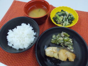 2025年11月19日 / 最終更新日 : 2025年11月20日 yorokobien 夕食 昼食 メルルーサの利休焼き 昼食 ご飯 メルルーサの利休焼き チンゲン菜の炒め物 みそ汁(ささがき・きぬさや)