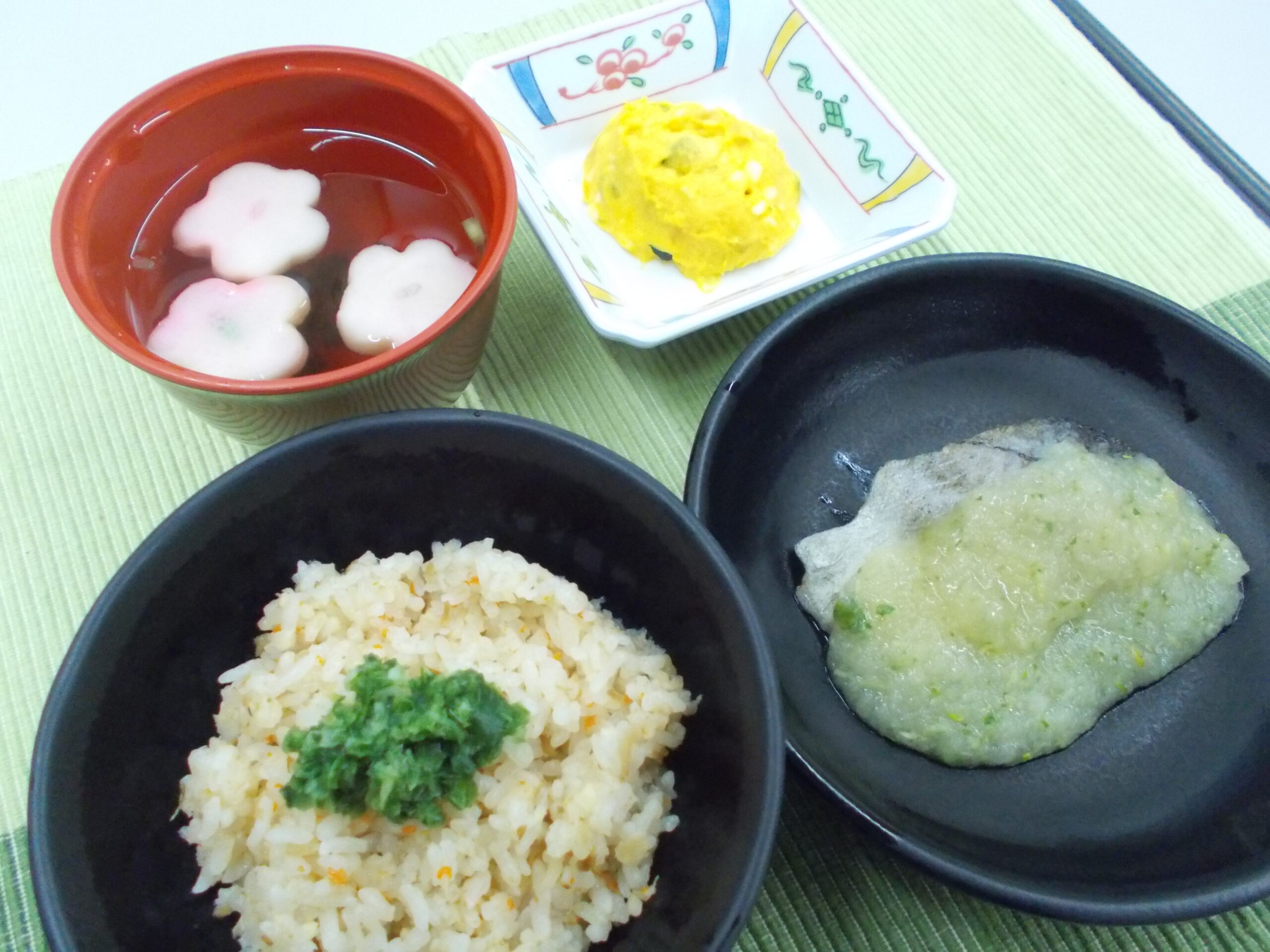 2026年1月29日 / 最終更新日 : 2026年2月1日 yorokobien 昼食 昼食 中華風炊き込みご飯 昼食 中華風炊き込みご飯 白身魚のみぞれあんかけ かぼちゃとチーズのサラダ 清汁(花麩・ねぎ)