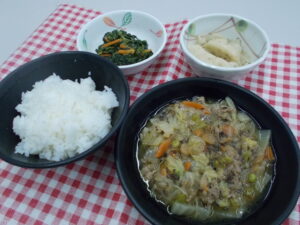 昼食 ご飯 八宝菜 水餃子 ナムル