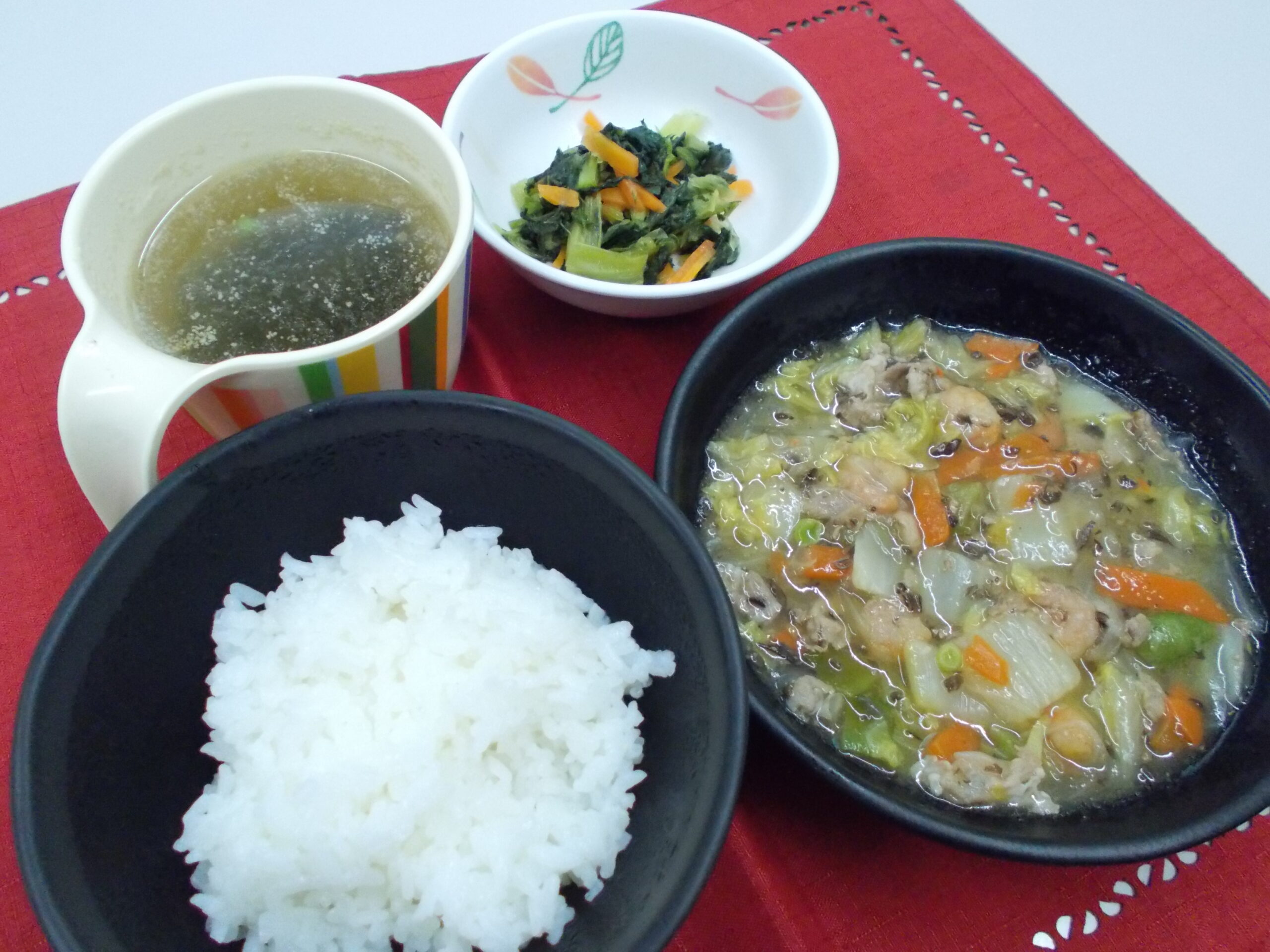 昼食 ご飯 八宝菜 ナムル わかめスープ