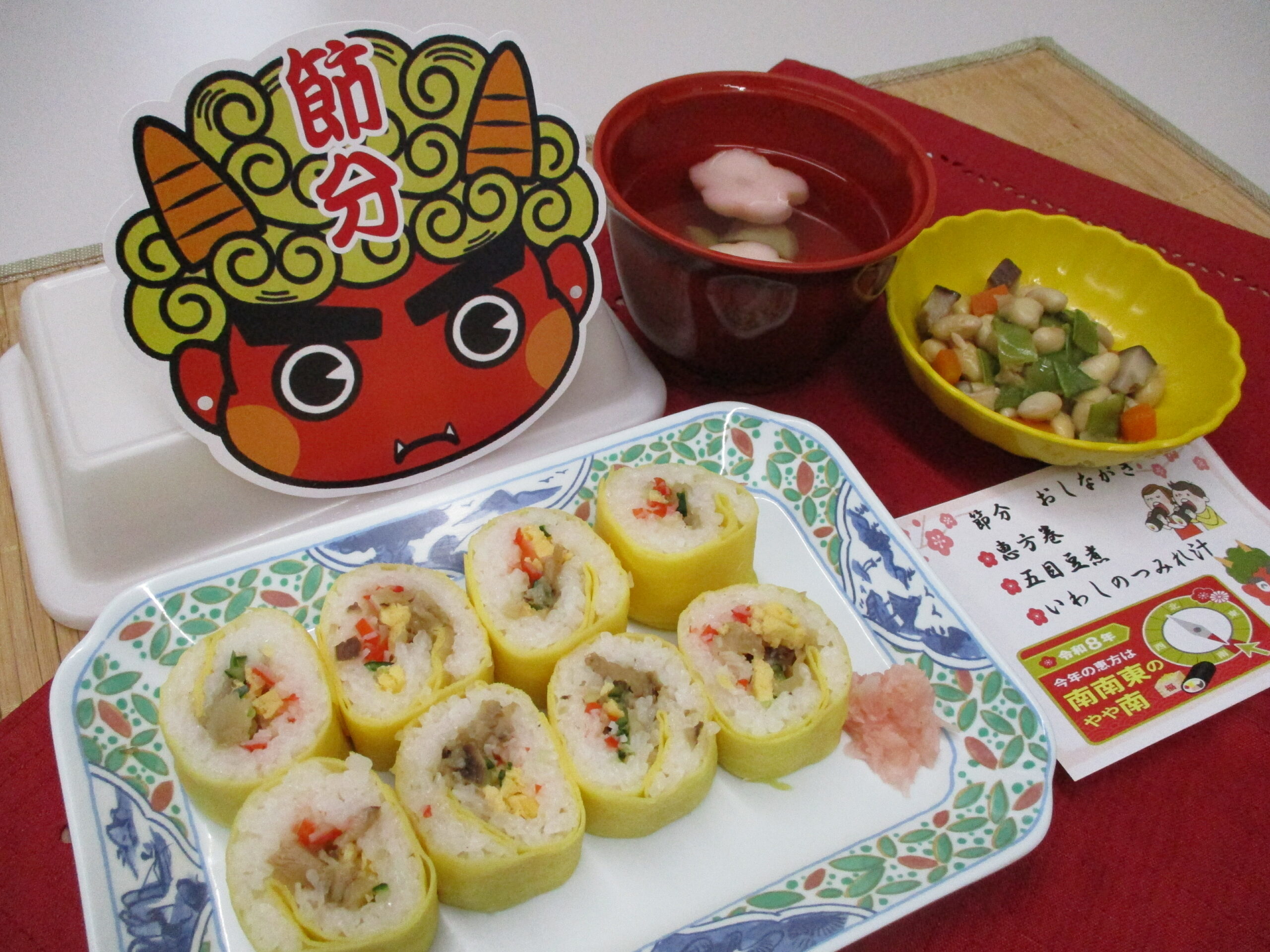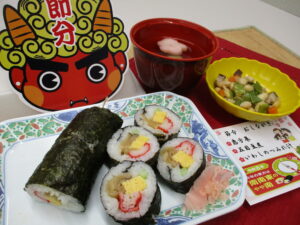 昼食 恵方巻 五目豆煮 いわしのつみれ汁 【節分】