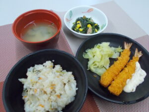 2026年2月20日 / 最終更新日 : 2026年2月20日 yorokobien 昼食 昼食 豚バラ大根の炊き込みご飯 昼食 豚バラ大根の炊き込みご飯 海老フライ ほうれん草の炒め物 みそ汁(わかめ・ねぎ)