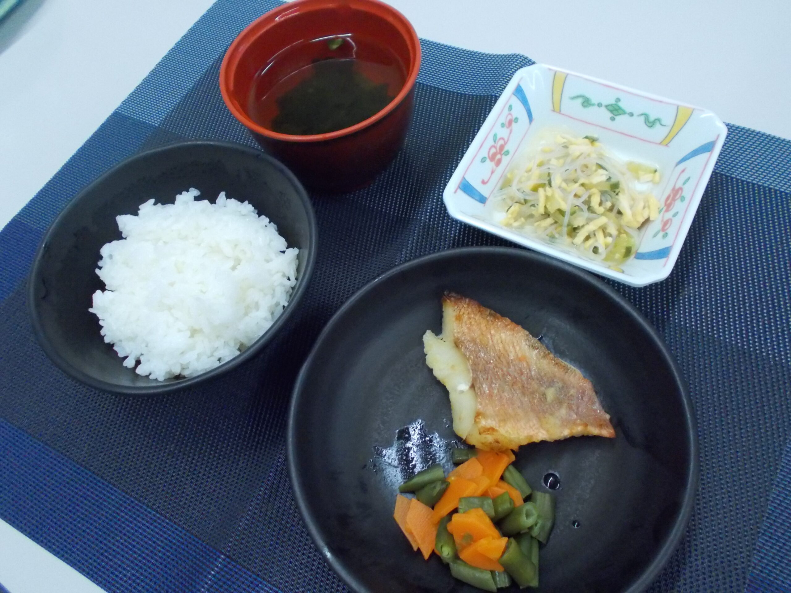 昼食 ご飯 赤魚の漬け焼き 春雨の和え物 清汁(わかめ・ねぎ)