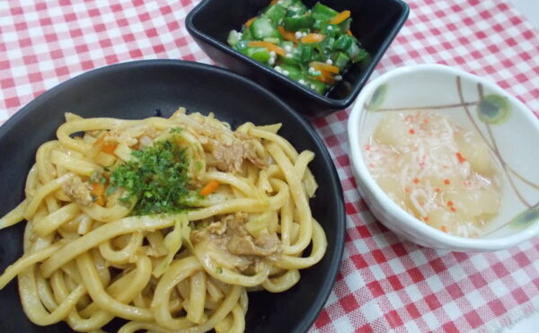 昼食 焼うどん 冬瓜のくず煮 オクラの和え物