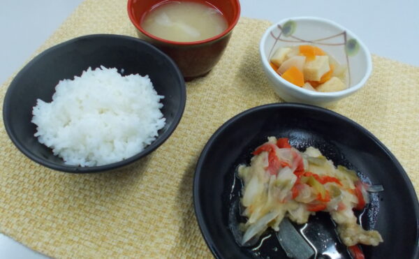 昼食 ご飯 鶏肉の南蛮漬け 大根の煮物 みそ汁(キャベツ・椎茸)