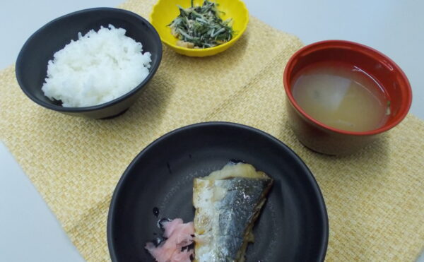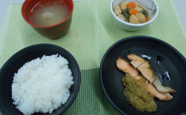昼食 ご飯 さわらの塩焼き がんもの煮物 みそ汁(大根・葉)