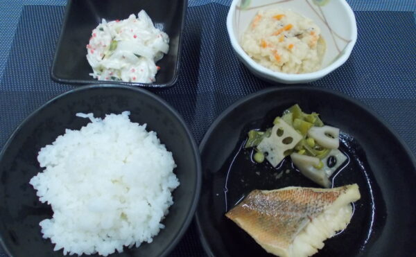 夕食 ご飯 メバルの煮付け 卯の花 大根サラダ