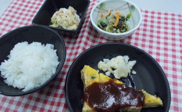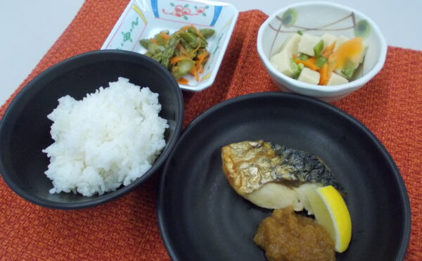 夕食 ご飯 松風焼き 白菜の煮浸し かぼちゃサラダ
