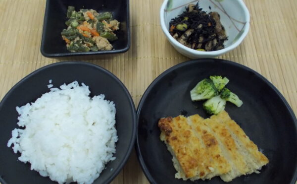 夕食 ご飯 松風焼き ひじき煮 いんげんのごま和え