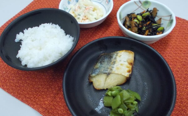 夕食 ご飯 さわらの西京焼き ひじき煮 マカロニサラダ