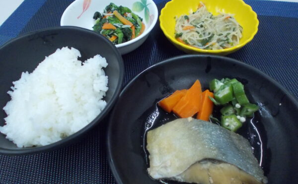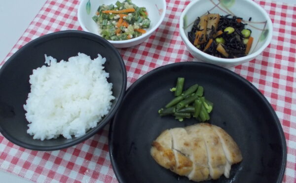夕食 ご飯 鶏肉の梅風味焼き ひじき煮 オクラのごま和え